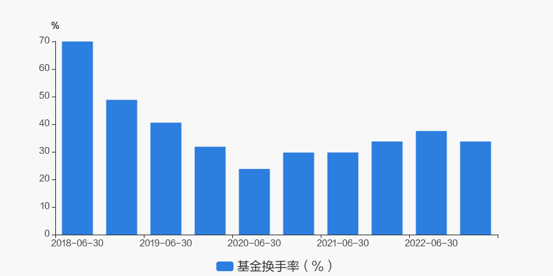 基金最新换手率为33.73%上一期换手率为37.54%。历史换手率最高为2018年6月30日,高达69.96%。