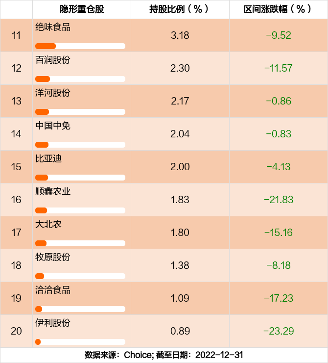 根据易方达消费行业股票2022年年报,该基金持仓比例排名11到20个股依次为:绝味食品,百润股份,洋河股份,中国中免,比亚迪,顺鑫农业,大北农,牧原股份,洽洽食品,伊利股份。