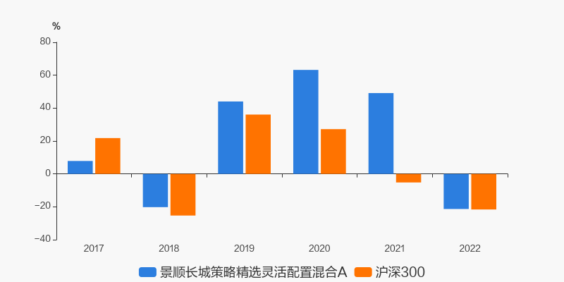 2022年度,截止至12月31日,景顺长城策略精选灵活配置混合A基金收益-21.33%,同期沪深300收益-21.63%,同类排名1433/2180。