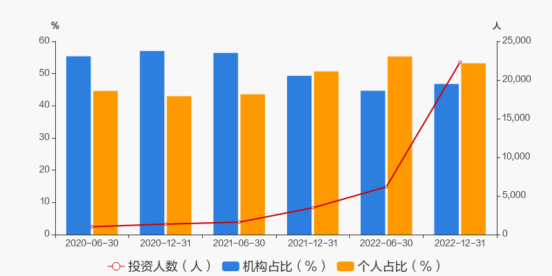 根据招商量化精选股票A2022年年报,最新持有人户数为2.23万人,较上期环比增加260.64%。其中,个人持有者占比53.21%,机构持有者占比46.79%。