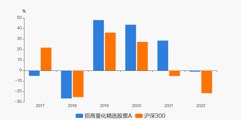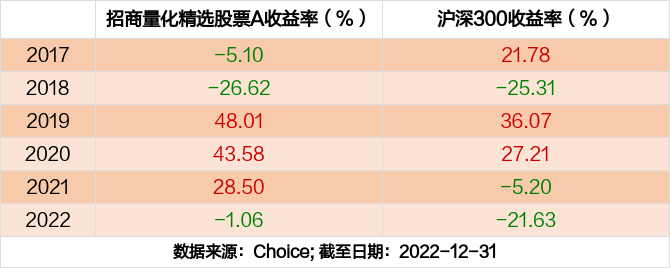 2022年度,截止至12月31日,招商量化精选股票A基金收益-1.06%,同期沪深300收益-21.63%,同类排名23/725。