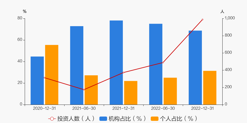根据太平行业优选股票C2022年年报,最新持有人户数为988人,较上期环比增加102.46%。其中,个人持有者占比31.3124%,机构持有者占比68.6876%。