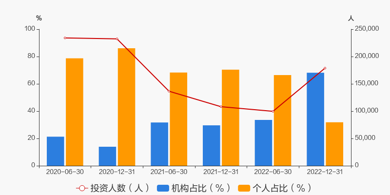 根据融通健康产业灵活配置混合A/B2022年年报,最新持有人户数为17.88万人,较上期环比增加79.38%。其中,个人持有者占比31.85%,机构持有者占比68.15%。