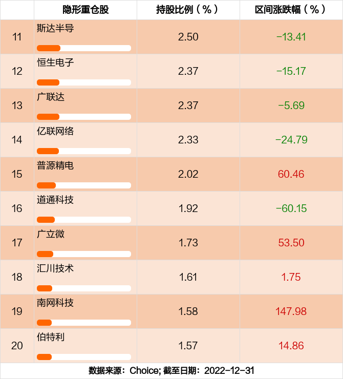 根据富国互联科技股票C2022年年报,该基金持仓比例排名11到20个股依次为:斯达半导,恒生电子,广联达,亿联网络,普源精电,道通科技,广立微,汇川技术,南网科技,伯特利。