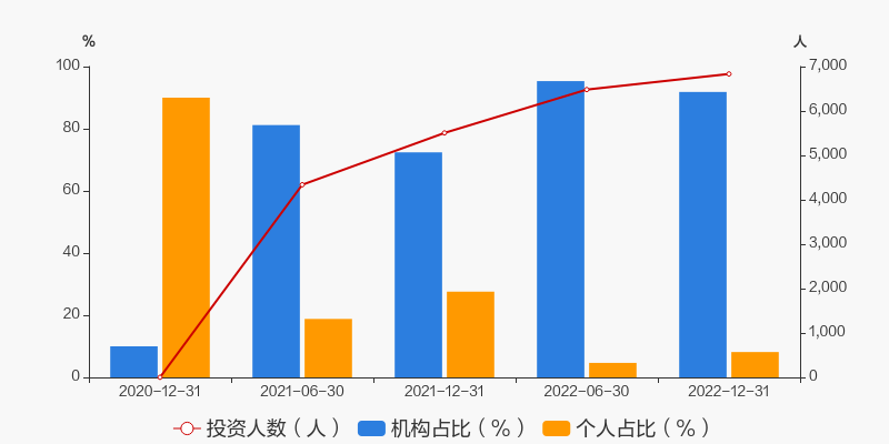 根据富国互联科技股票C2022年年报,最新持有人户数为6834人,较上期环比增加5.43%。其中,个人持有者占比8.16%,机构持有者占比91.84%。