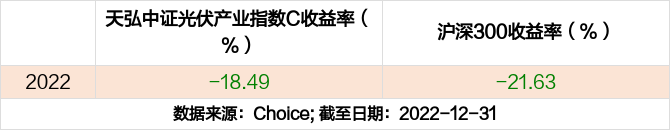 2022年度,截止至12月31日,天弘中证光伏产业指数C基金收益-18.49%,同期沪深300收益-21.63%,同类排名617/1485。