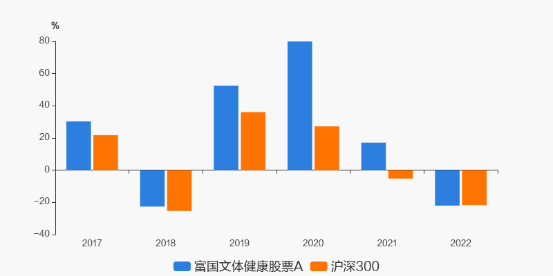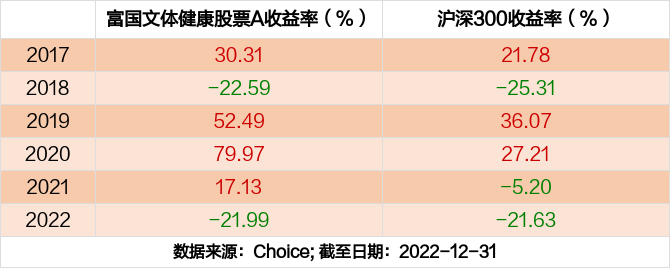 2022年度,截止至12月31日,富国文体健康股票A基金收益-21.99%,同期沪深300收益-21.63%,同类排名414/725。