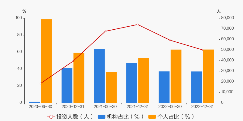 根据富国文体健康股票A2022年年报,最新持有人户数为5万人,较上期环比增加-15.41%。其中,个人持有者占比62.96%,机构持有者占比37.04%。