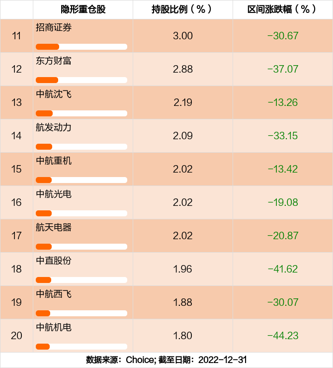 根据前海开源多元策略混合C2022年年报,该基金持仓比例排名11到20个股依次为:招商证券,东方财富,中航沈飞,航发动力,中航重机,中航光电,航天电器,中直股份,中航西飞,中航机电。