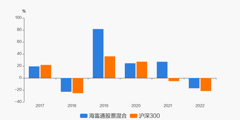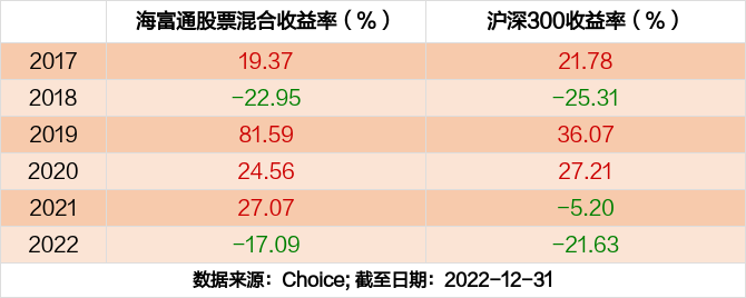 2022年度,截止至12月31日,海富通股票混合基金收益-17.09%,同期沪深300收益-21.63%,同类排名827/2661。