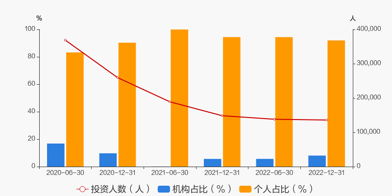 根据海富通股票混合2022年年报,最新持有人户数为13.58万人,较上期环比增加-1.63%。其中,个人持有者占比91.97%,机构持有者占比8.03%。