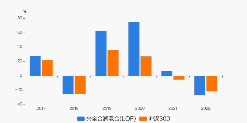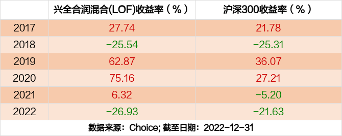 2022年度,截止至12月31日,兴全合润混合(LOF)基金收益-26.93%,同期沪深300收益-21.63%,同类排名2014/2661。