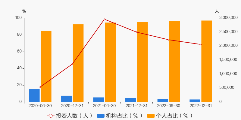 根据富国天惠成长混合A/B(LOF)2022年年报,最新持有人户数为205.57万人,较上期环比增加-7.51%。其中,个人持有者占比96.97%,机构持有者占比3.03%。