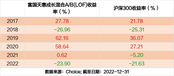 2022年度,截止至12月31日,富国天惠成长混合A/B(LOF)基金收益-23.90%,同期沪深300收益-21.63%,同类排名1678/2661。