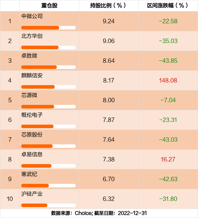 本期基金累计买入金额最高的前十大个股分别是芯源微,中微公司,北方华创,寒武纪,芯原股份,沪硅产业,卓易信息,概伦电子,复旦微电,卓胜微。