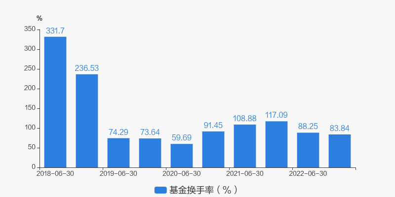 基金最新换手率为83.84%,上一期换手率为88.25%。历史换手率最高为2018年6月30日,高达331.7%。