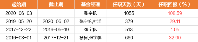 张宇帆现管理6只产品(包括A类和C类),管理总规模为34.44亿元,平均年化回报为18.75%。