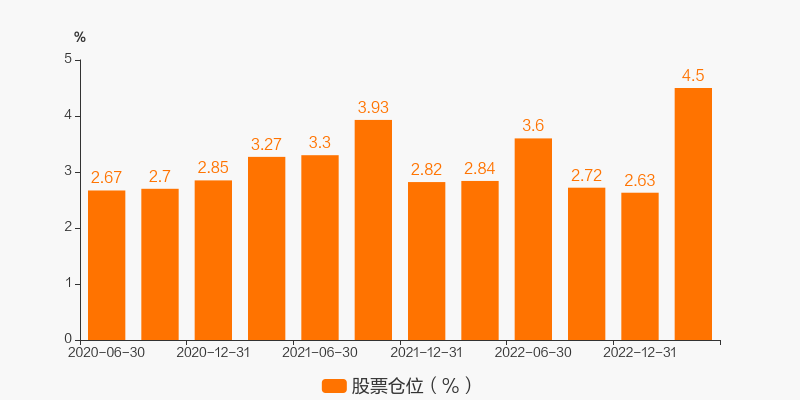最新数据显示,本期该基金的股票仓位达4.5%。较上一期环比变化了71.10%。