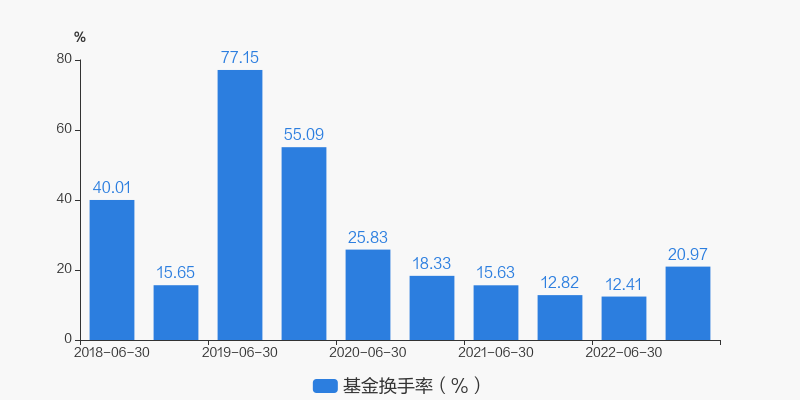 基金最新换手率为20.97%,上一期换手率为12.41%。历史换手率最高为2019年6月30日,高达77.15%。