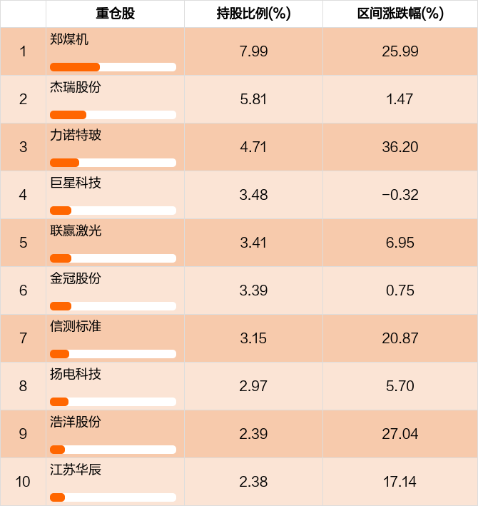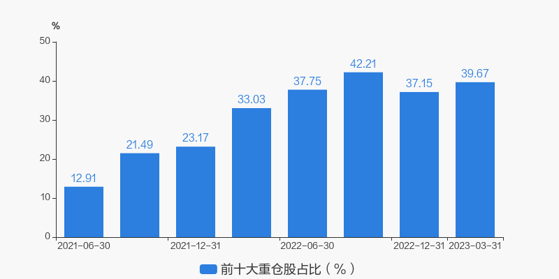 从十大重仓股情况来看,最新一期前十大重仓股占比为39.68%。