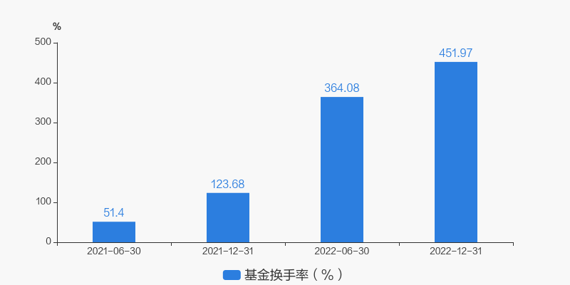 基金最新换手率为451.97%,上一期换手率为364.08%。历史换手率最高为2022年12月31日,高达451.97%。