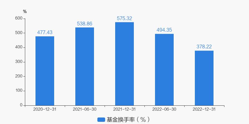 基金最新换手率为378.22%,上一期换手率为494.35%。历史换手率最高为2021年12月31日,高达575.32%。