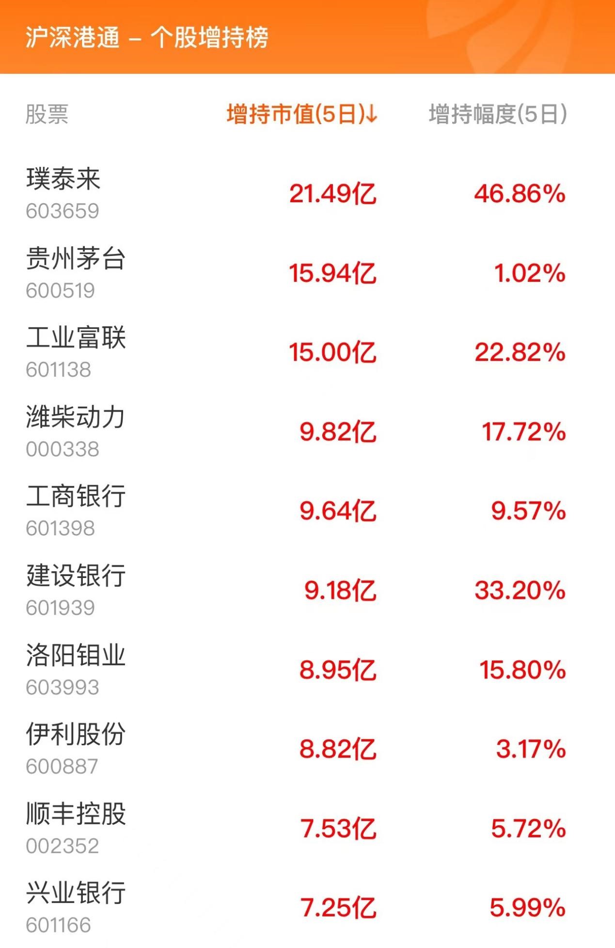 数据显示,近五个交易日,北向资金增持璞泰来21.49亿元,增持贵州茅台15.94亿元,增持工业富联15亿元。此外,天风证券近五日增持幅度居前,增持市值合计1.29亿元。