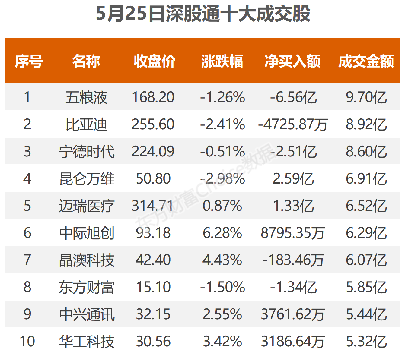 5月25日北向资金最新动向(附十大成交股)