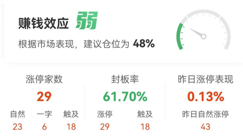涨停股方面,截至午间收盘,共计29只个股涨停,另有18只个股一度触及涨停,封板率61.70%。