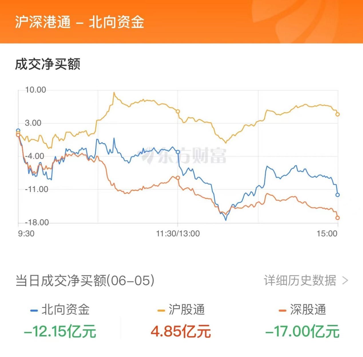 6月5日,两市震荡分化,沪指微涨,创业板指陷入调整。北向资金当日净流出12.15亿元,其中沪股通净流入4.85亿元,深股通净流出17亿元。北向资金当日成交金额972.04亿元,占A股总成交额的11.12%。