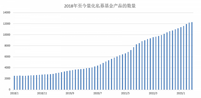朝阳永续数据显示,2018年年初时量化私募基金数量仅为2535只,2023年5月份已经增长至12271只,期间增长了4.8倍。