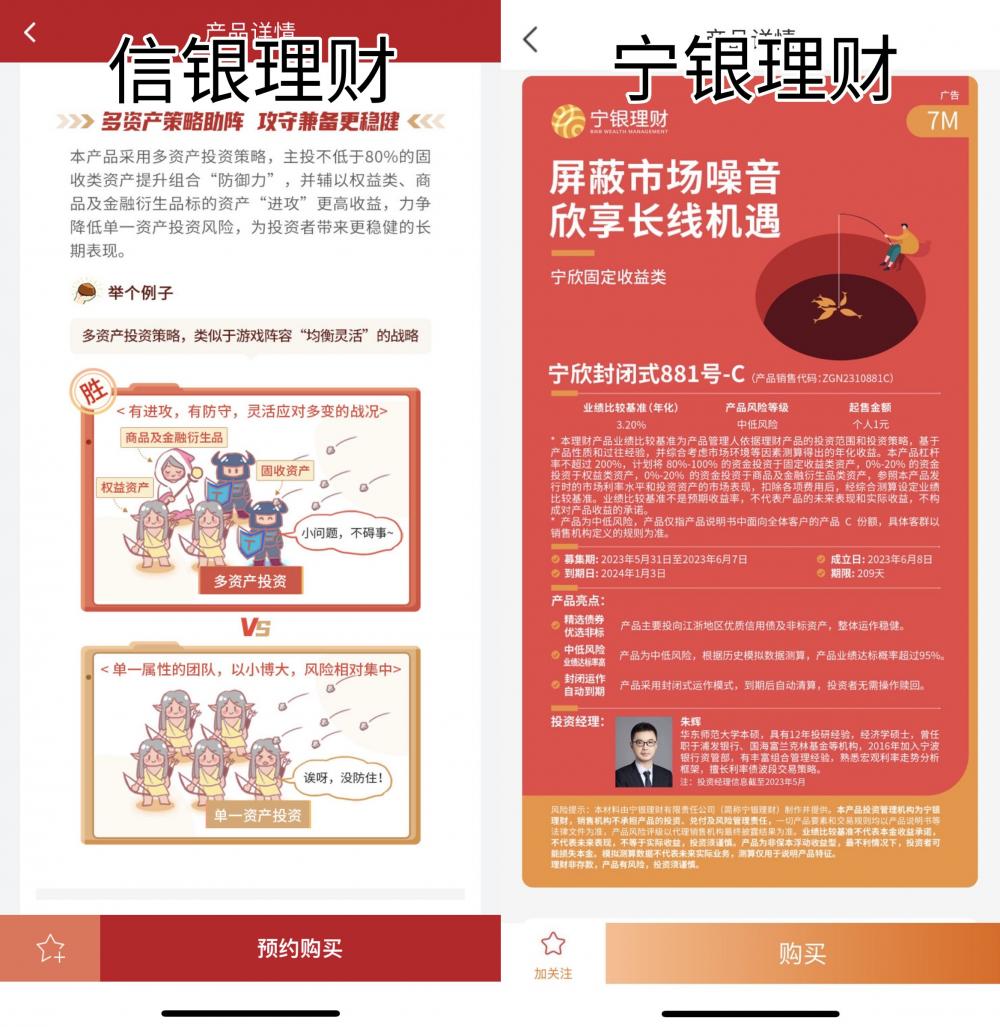 在此维度的测评中,信银理财、宁银理财的产品介绍页面中还增加了长图文介绍产品亮点,为用户提供更多信息参考。而从实际体验来看,信银理财页面中相关内容阅读体验较好,宁银理财尽管提供了较多内容信息,但许多内容字号较小,实际通过手机阅读体验不佳。