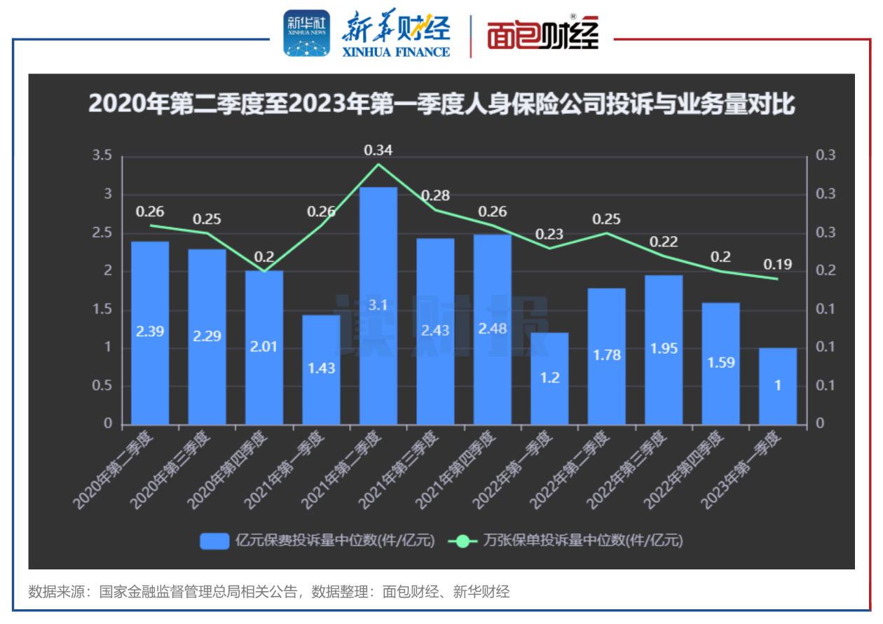 图11:2020年第二季度至2023年第一季度人身保险公司投诉与业务量对比