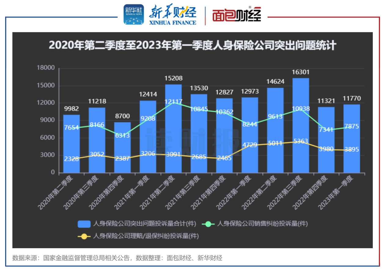 通报显示,2023年第一季度,在涉及人身保险公司投诉中,销售纠纷投诉为7875件,占比为53.2%;退保纠纷投诉为3895件,占该季度人身保险公司投诉总量的26.3%。