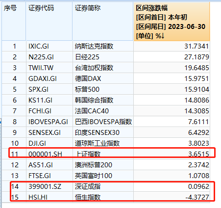 2023 年上半年(截至6月30日,下同),中国股票市场较为动荡,在全球主要股票指数中排名靠后。