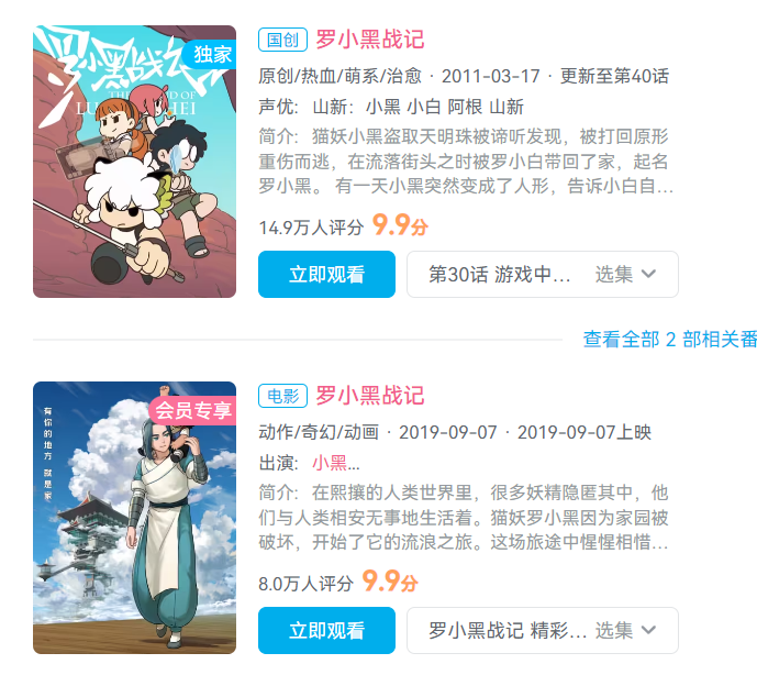 公开资料显示,“罗小黑”是寒木春华创始人章平2010年创作出的动漫形象,原型是他曾养过的一只猫。次年,以“罗小黑”为主角的动画剧集《罗小黑战记》第一季在B站正式上线,靠着精良的制作和可爱的形象赢得了众多观众的喜爱。《罗小黑战记》第一季在2021年正式完结,收获全网播放量超过10亿次,B站评分9.9,豆瓣评分9.6,收获了良好的口碑。