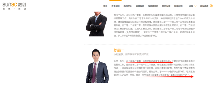 值得一提的是,交易方融创文化集团总裁由孙喆一担任。多家媒体确认其为融创集团董事长孙宏斌的长子。目前,融创官网上,孙喆一的职务已经更新为“融创集团执行董事、副总裁兼文化集团总裁”。
