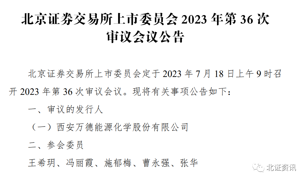 根据北交所网站7月12日的消息,北交所上市委定于7月18日召开2023年第36次审议会议,万德股份上会。