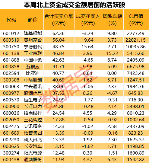 本周A股主要股指震荡上涨,北上资金出现3月以来最高单周净流入,合计一周净流入198.44亿元,其中7月13日单日北上资金涌入A股超百亿元。