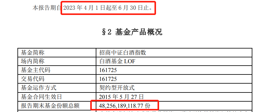 招商中证白酒指数基金2023年二季报显示,截至二季度末,该基金最新总份额为482.56亿份,较一季度末增加超50亿份,增幅达11.92%。其中,A、C份额获净申购数量分别为26.51亿份、24.90亿份。