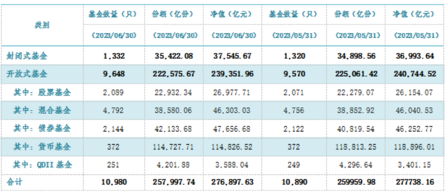 截至2023年6月30日 公募基金管理总净值规模达27.69万亿元