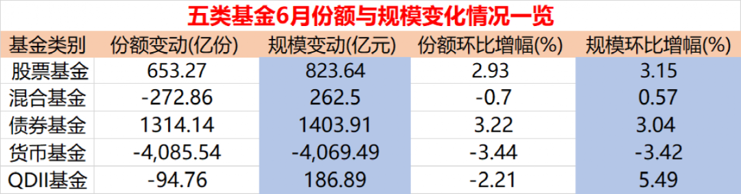 此外,QDII基金6月份额也出现90多亿份缩水,但资产规模增加186.89亿元。