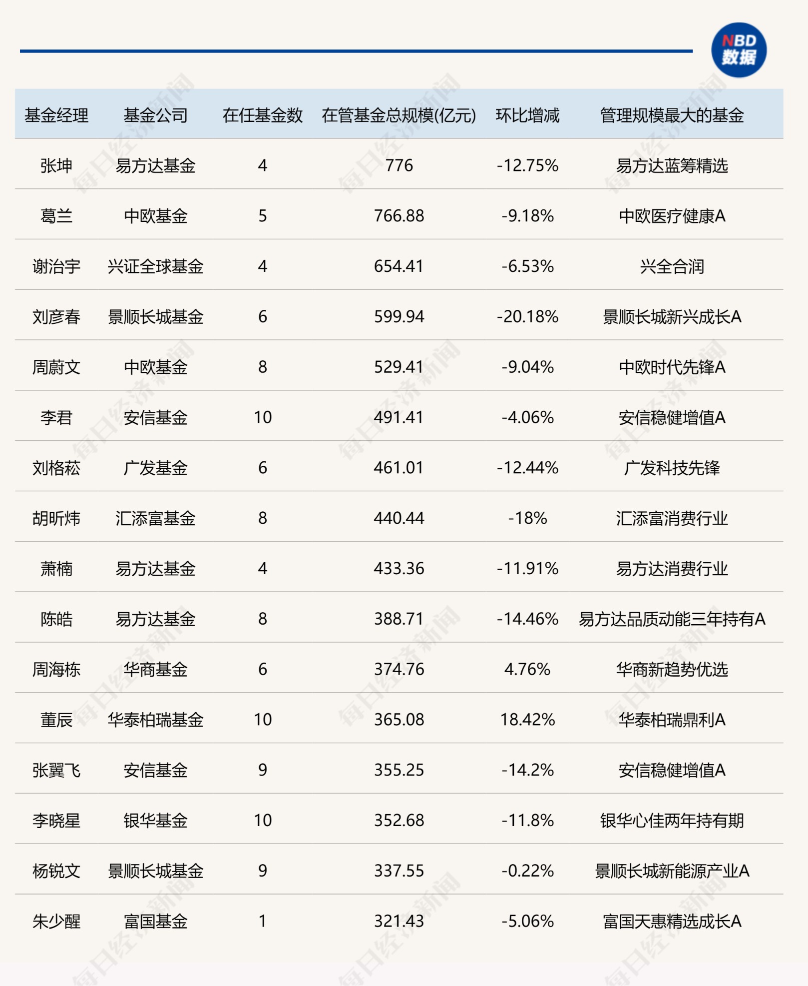 最新“百亿俱乐部”基金经理名单出炉,规模普遍缩水