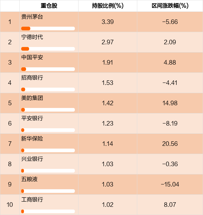 从十大重仓股情况来看,最新一期前十大重仓股占比为16.67%。
