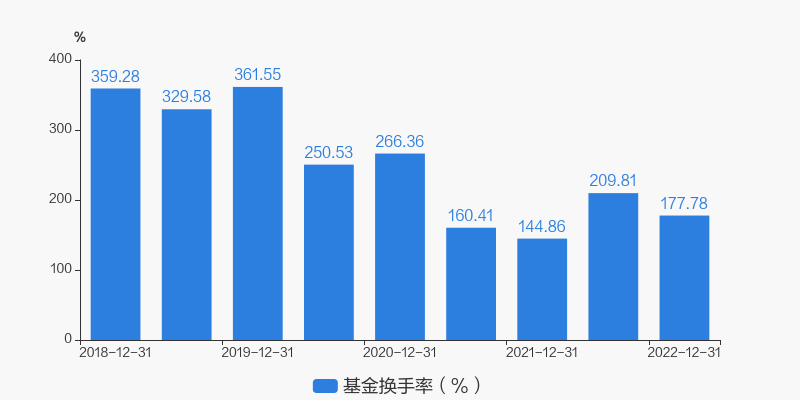 基金最新换手率为177.78%,上一期换手率为209.81%。历史换手率最高为2019年12月31日,高达361.55%。