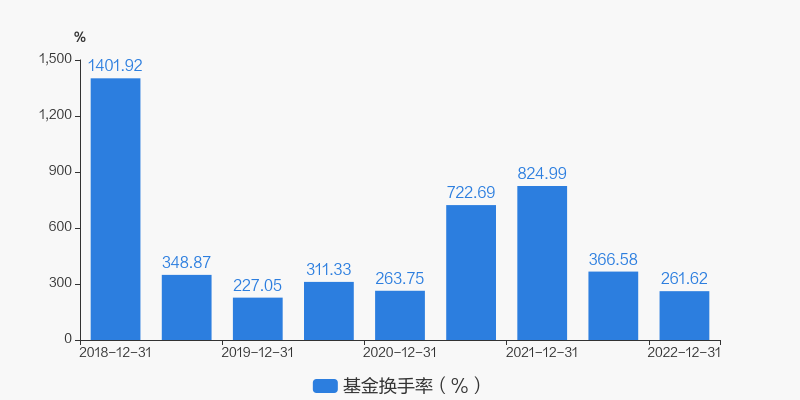 基金最新换手率为261.62%,上一期换手率为366.58%。历史换手率最高为2018年12月31日,高达1401.92%。
