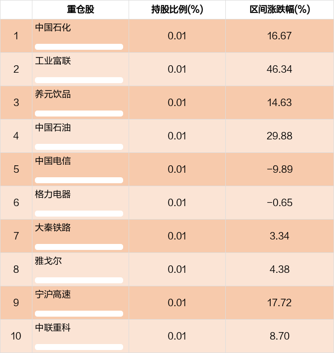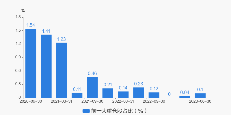 从十大重仓股情况来看,最新一期前十大重仓股占比为0.10%。
