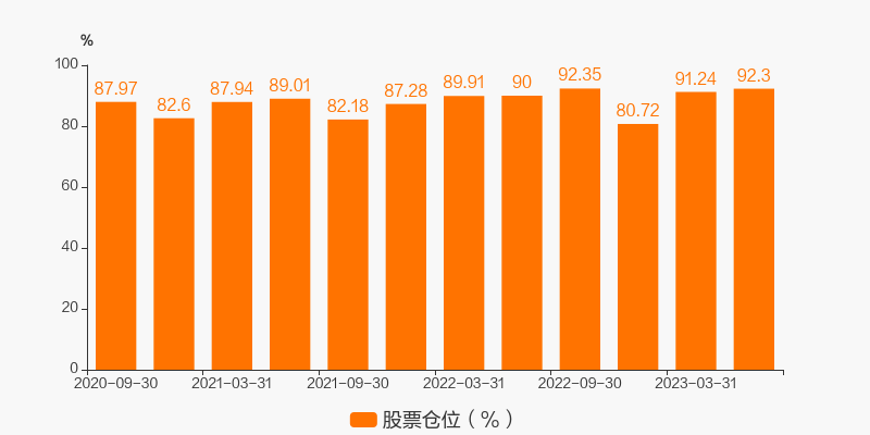 最新数据显示,本期该基金的股票仓位达92.3%。较上一期环比变化了1.16%。