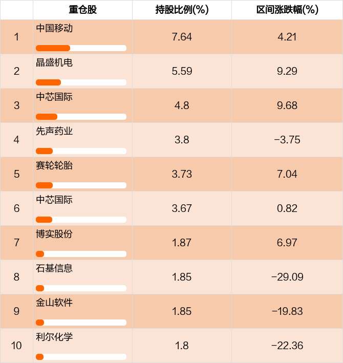 从十大重仓股情况来看,最新一期前十大重仓股占比为36.60%。