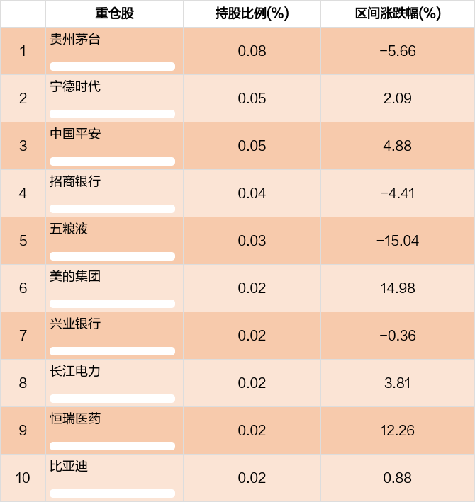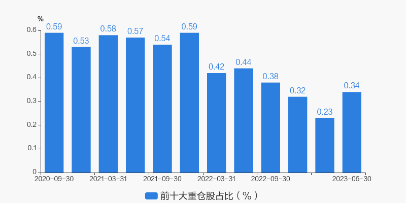 从十大重仓股情况来看,最新一期前十大重仓股占比为0.35%。